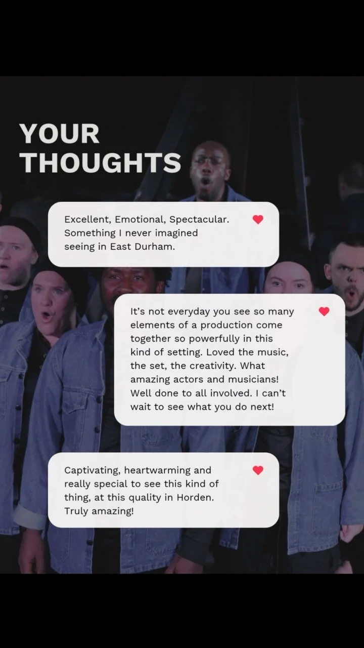 We make Theatre for, with and by the diverse communities of County Durham to share with audiences on a global stage.